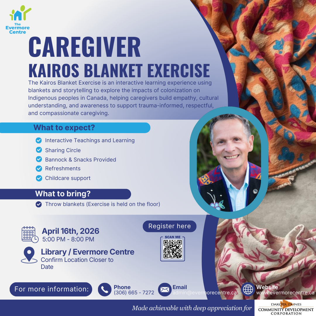 Join us for an evening of learning, reflection, and connection through the Caregiver Blanket Exercise. This experience is designed to support caregivers with interactive teachings, shared learning, and meaningful discussion in a safe and supportive environment. Our dedicated and compassionate facilitators create space for caregivers to feel supported, respected, and engaged, while exploring important perspectives together.